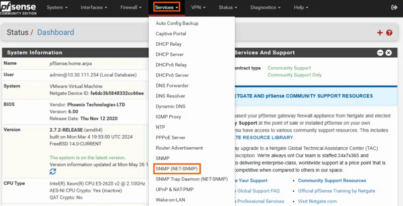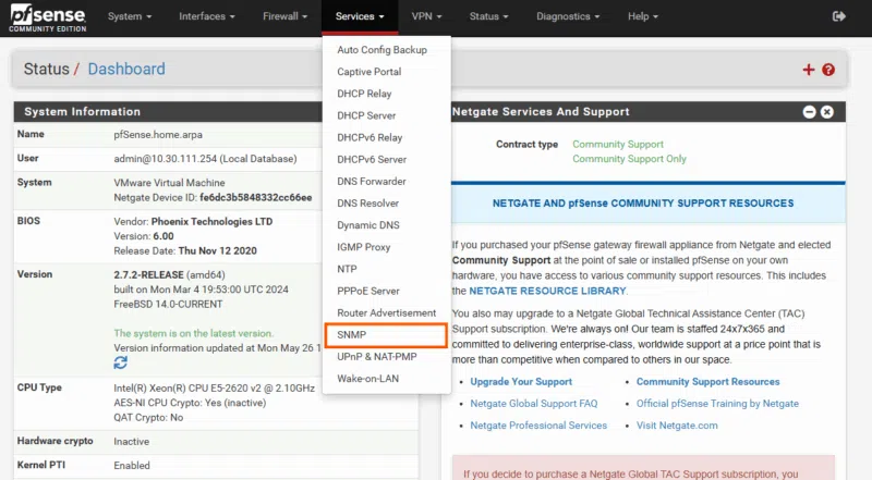 II. Comment activer SNMP sur pfSense ?