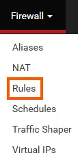 Dans notre exemple, nous allons créer une règle de pare-feu pour autoriser la communication SNMP. Accédez au menu Firewall de pfSense, puis sélectionnez l’option Rules et ajoutez une règle de filtrage sur le WAN.