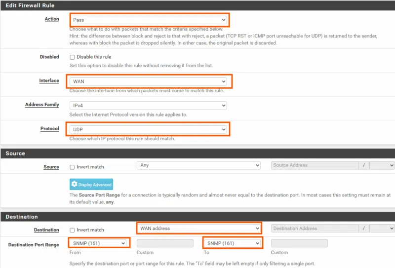 Règle de pare-feu SNMP sur pfSense
