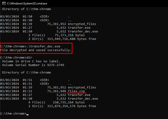 Running the new modified assembly, we perform the decryption and get the files.zip archive.