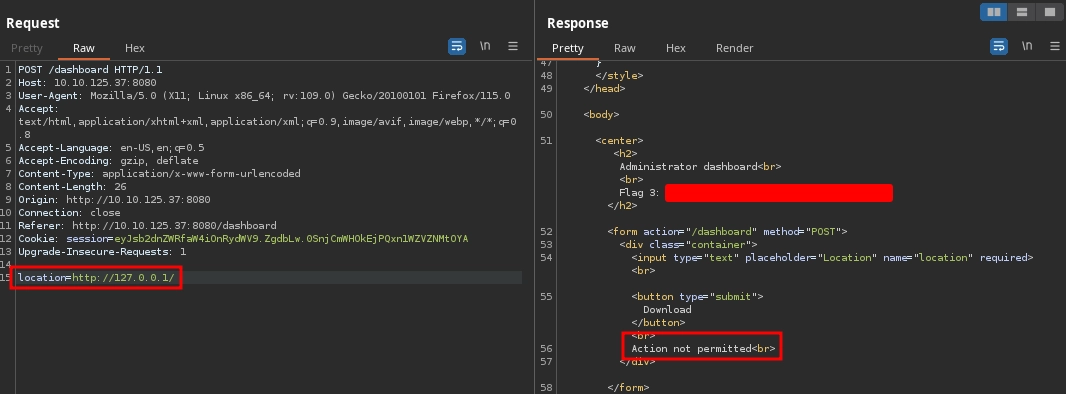 Now, using this SSRF vulnerability, we can try to reach out to port 80 from localhost, since we are getting forbidden by accessing it directly ourselves.