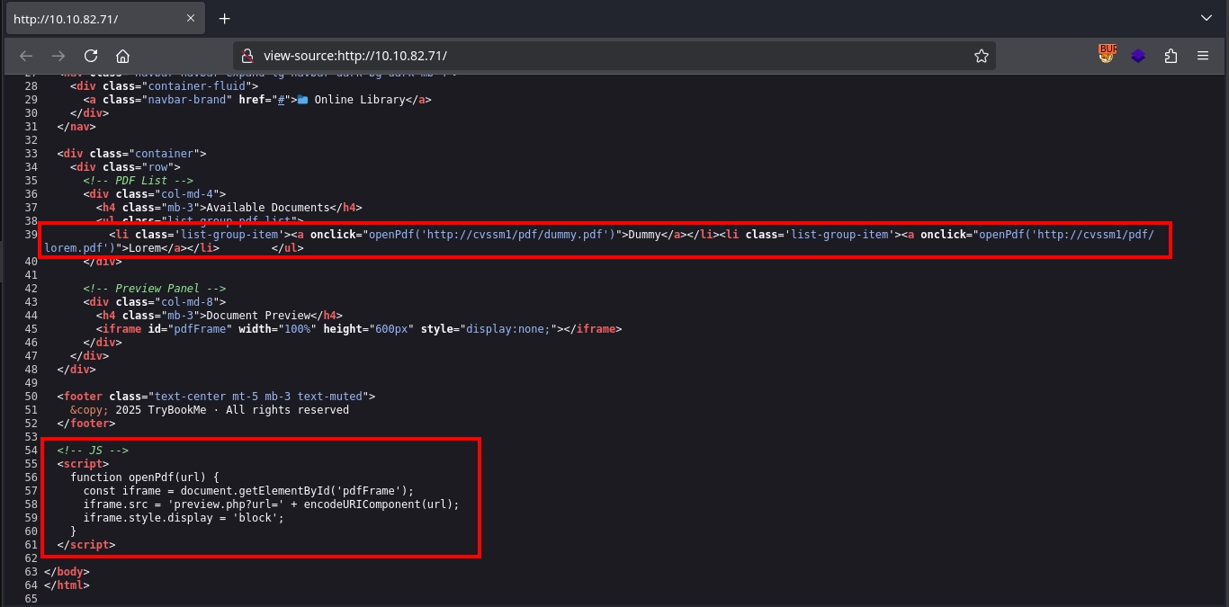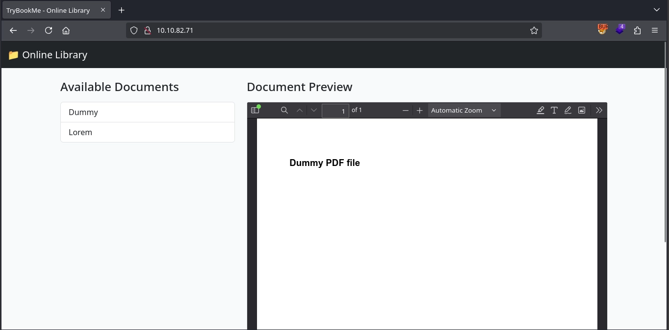 Visiting http://10.10.82.71/, we see a web application for viewing documents. Clicking one of the available documents shows its preview in an iframe.
