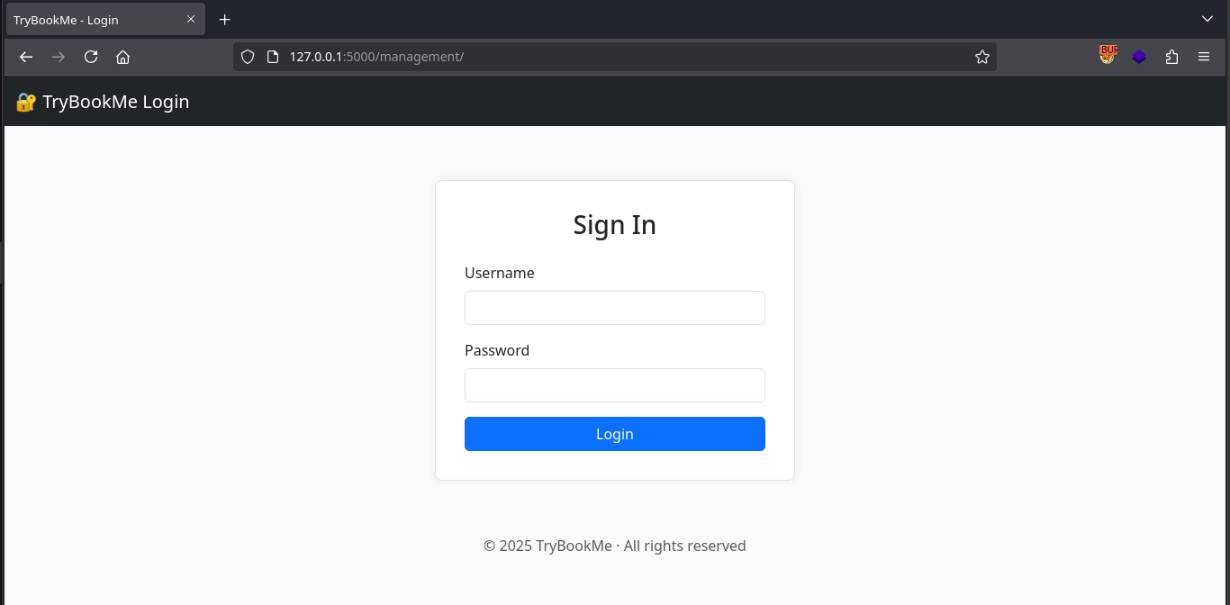 Now, making a request to http://127.0.0.1:5000/management/, we can see that we are able to access http://127.0.0.1:80/management/ and get a login form.