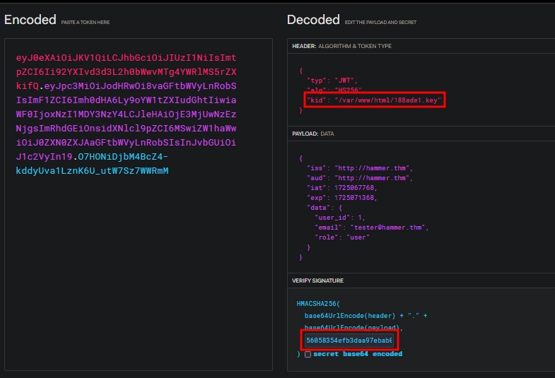 We can try changing it to the key file we discovered before and can use it’s contents as the key for signing our token.