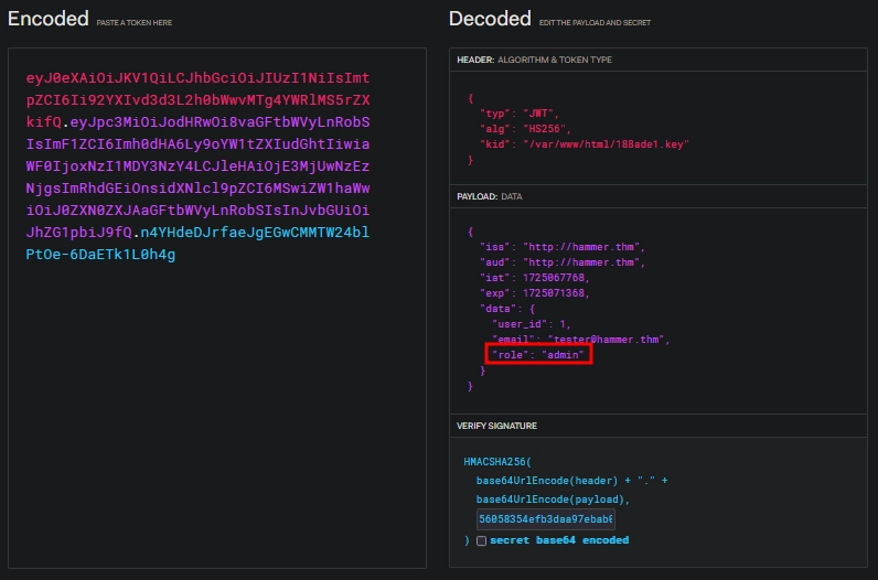 Now that we are able to forge tokens, we can change our role in the token data from user to admin.