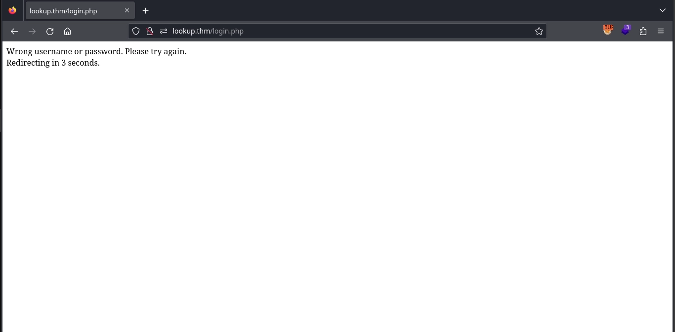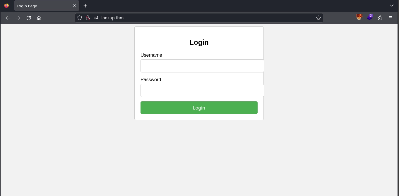 Nmap already informs us that port 80 redirects to http://lookup.thm, so we add it to our hosts file.