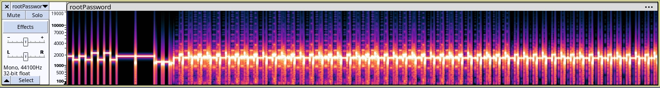 Looking at the files in chad-cherry’s home, we discover a note, with the important part being that we can discover the root password inside the .wav file.