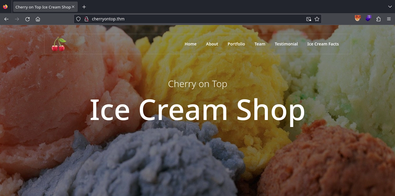 Visiting http://cherryontop.thm/, we get a page about an ice cream shop.
