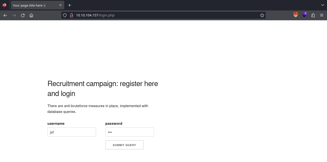 And we can login via http://10.10.104.157/login.php. While logging in, we notice an interesting note: