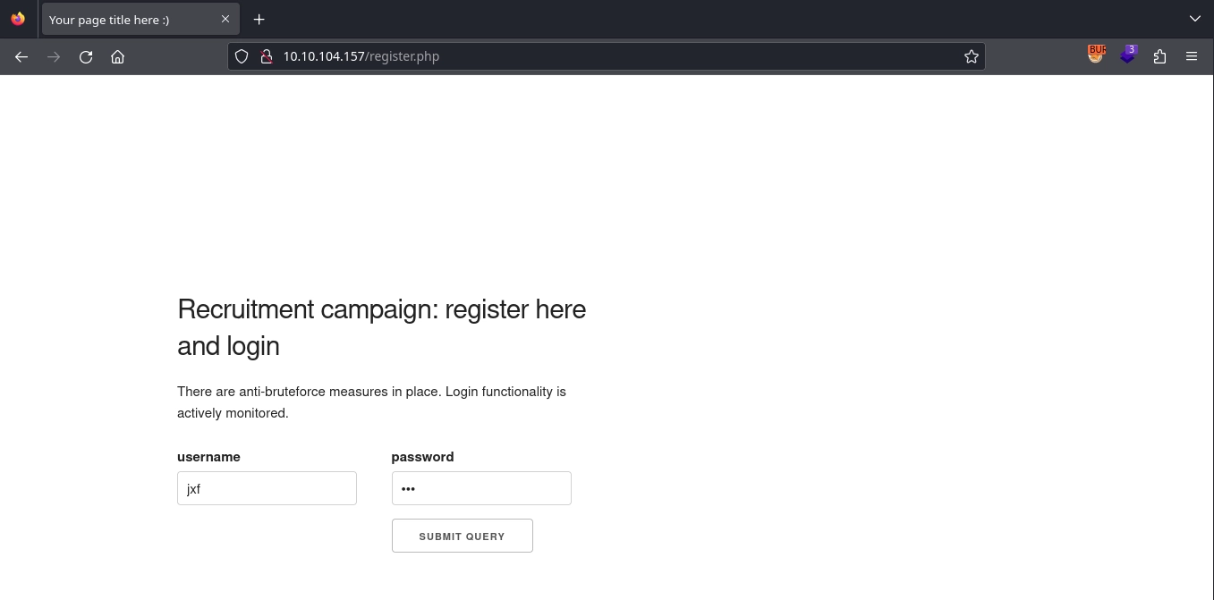 We can register an account at http://10.10.104.157/register.php.