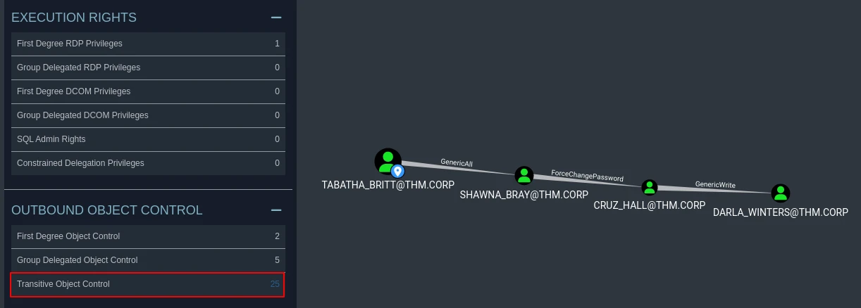 Since TABATHA_BRITT has GenericAll for SHAWNA_BRAY, we can use this to reset the password for SHAWNA_BRAY.