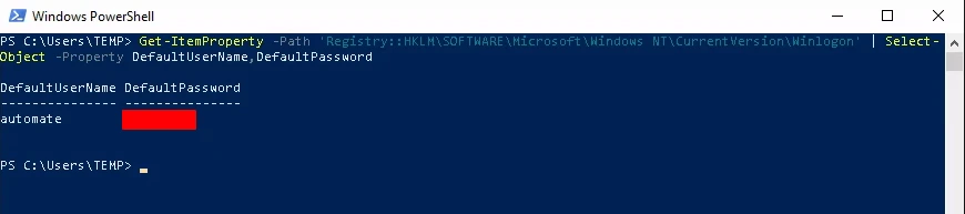 As TABATHA_BRITT, we can get access to the machine using RDP and find the autologon credentials for automate inside HKLM:\SOFTWARE\Microsoft\Windows NT\CurrentVersion\Winlogon registry.
