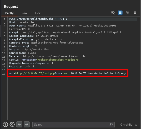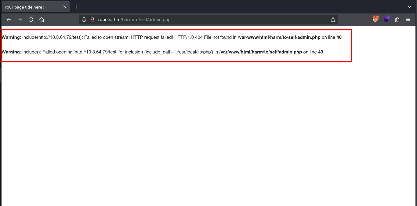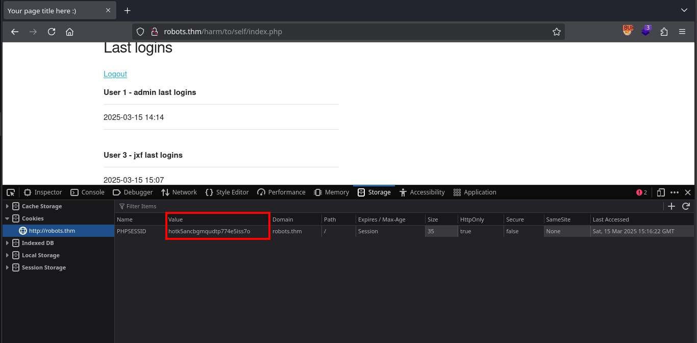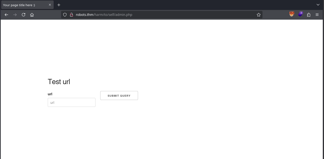 After logging in, we are redirected to http://robots.thm/harm/to/self/index.php, where we see: