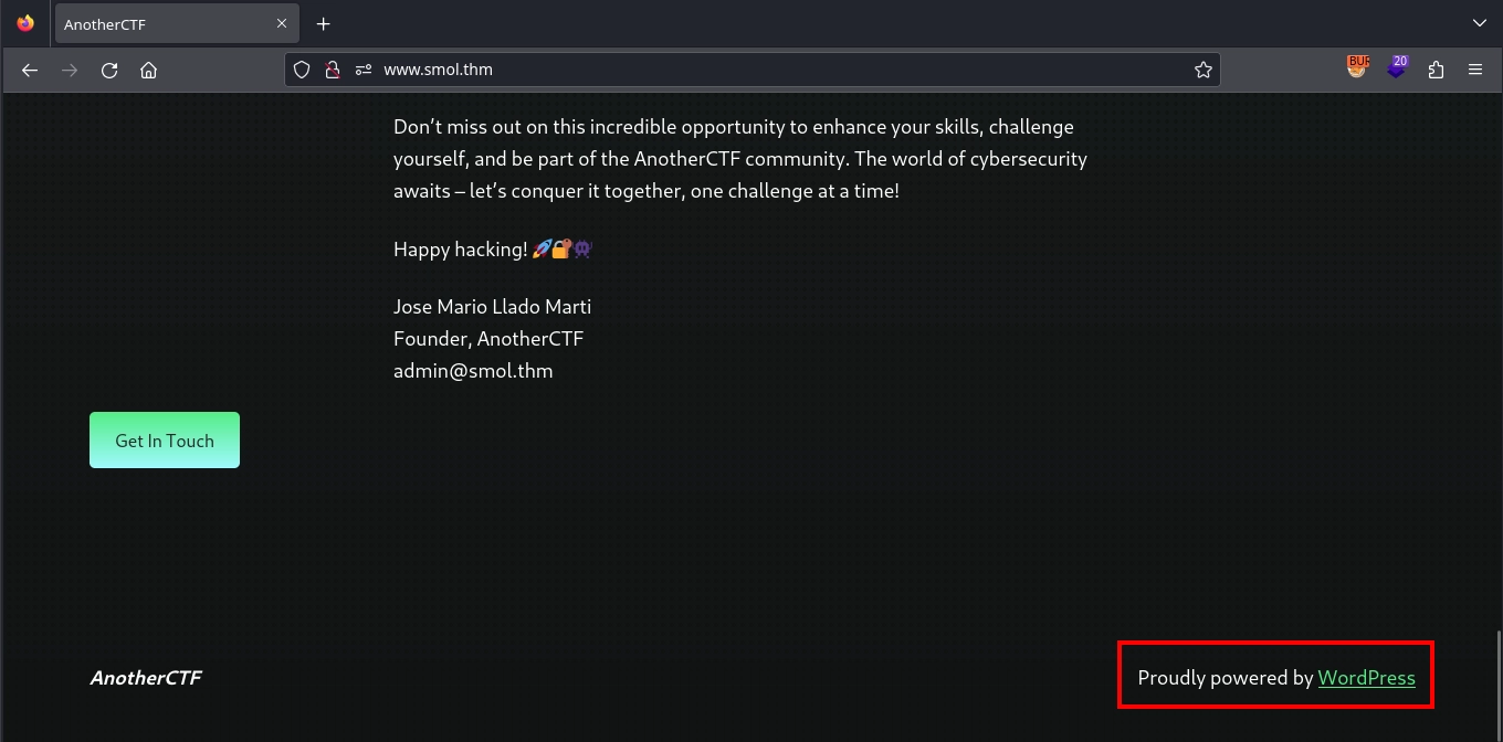 Visiting http://www.smol.thm/, we are greeted with a WordPress site.