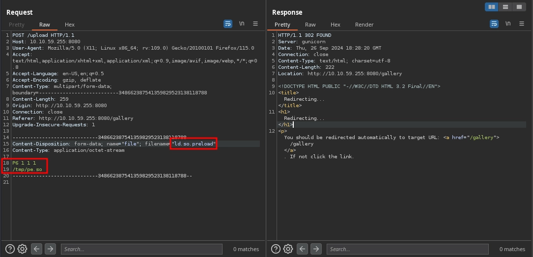 Upon checking the linked pages, http://10.10.59.255:8080/gallery seems interesting as it allows image uploads. However, since it is a Python application, there doesn’t appear to be much we can do with it for now.