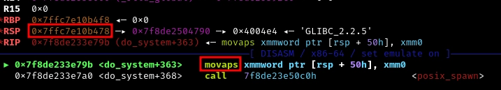 # Once we have this address, we can use the same gadget to set it as an argument for the system function.