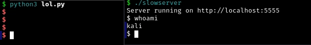 As we can see, running the script, we are able to make the application spawn a shell. However, there is a problem: since we are interacting with the program over a socket and not directly, we are unable to interact with the spawned shell.