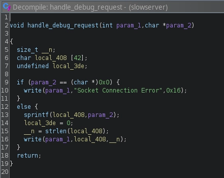 As we can see, with a script like this, we are able to leak the address and calculate the base address for the binary. Even though we are closing our connection to the server, since the server accepts connections in a while loop, this address will not change, and we can use it for the next requests.