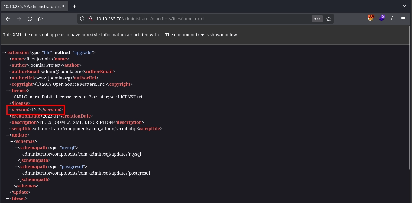 Since it uses Joomla!, by making a request to the /administrator/manifests/files/joomla.xml endpoint, we can discover the version as 4.2.7.