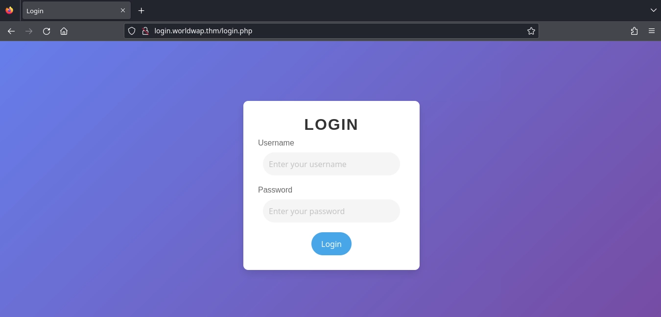 Visiting http://login.worldwap.thm/, we get an empty page.
