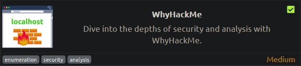 WhyHackMe has an FTP server that accepts anonymous logins. There is a note on this FTP server mentioning an endpoint on the webserver that contains user credentials and is only accessible by localhost. Using an XSS vulnerability on the webserver, it is possible to make the admin user retrieve the credentials for us and get a SSH session. Upon discovering a HTTPS server running and the iptables rule denying access to it, we will replace the iptables rule using sudo to accept connections. Now that we are able to access the HTTPS server, we will discover the endpoint and parameters required for running commands by decrypting the TLS traffic inside a packet capture file we found with the certificate key of the HTTPS server and use this to get a shell as www-data. At last, we will use sudo to get a shell as root.